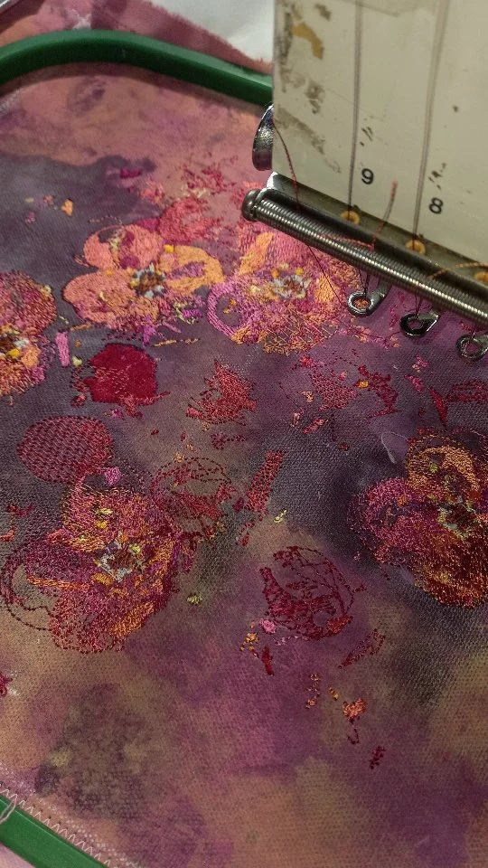 - for -Combining several different shades of red acrylic paint, ink and machine embroidery the four part series incorporates the design and philosophy previously shown in the forget-me-not and not-forgotten works to demonstrate and explore the theme of eternal love.