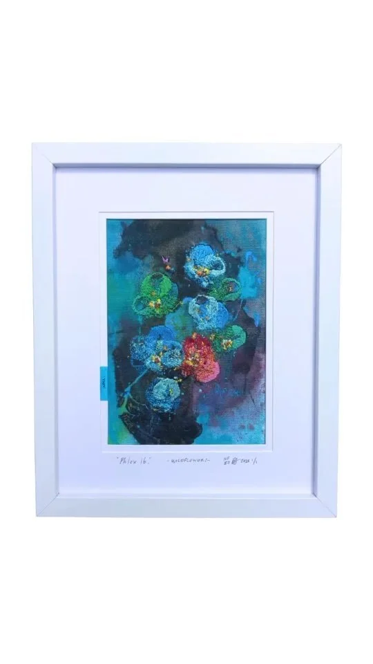 “In 2024 uou.label exhibited 'Forget Me Not' a poignant introspection on Alzheimer's, memory loss & the passing away of life. This was accompanied by 'Into the Ether' and followed by 'Not Forgotten' which developed the theme of that spark of life continuing by passing on it's colour, shape or potential to new life.