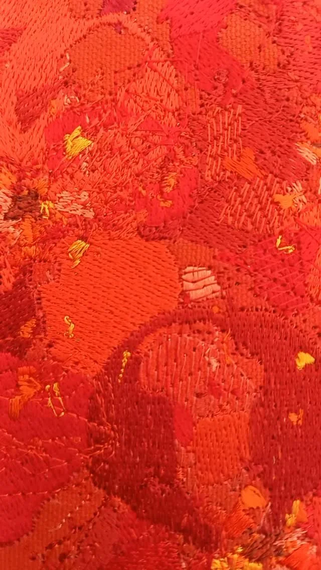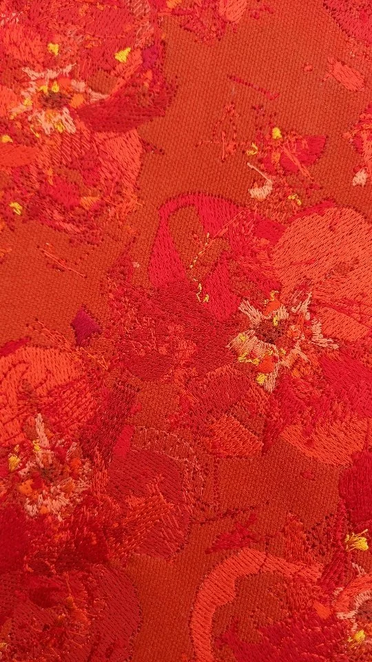 - for -Combining several different shades of red acrylic paint, ink and machine embroidery the four part series incorporates the design and philosophy previously shown in the forget-me-not and not-forgotten works to demonstrate and explore the theme of eternal love.