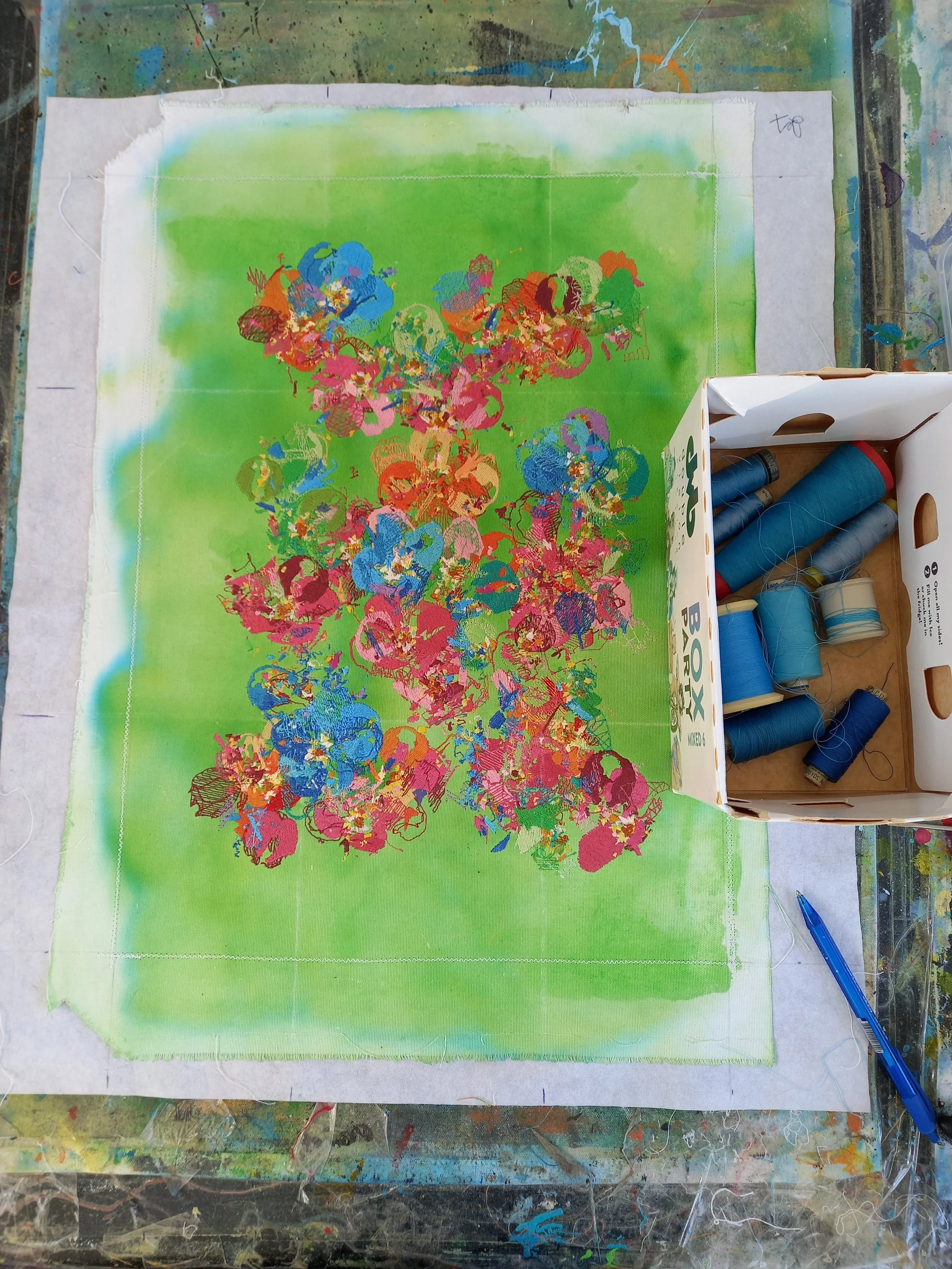 The making of “Always keep the lid on the Play-Doh” - the matte colours of the thread, an just the general chaos of it reminded me of Play-Doh, the reason i titled it “Always keep the lid on the Play-Doh” is a reminder to always try to explore. I very rarely know what colours i’m going to use, i try to do this as if im painting on the fly. if you leave the pottle of Play-Doh open it gets dried,an you cant use it anymore. it’s also just a good classic reminder, shits expensive.